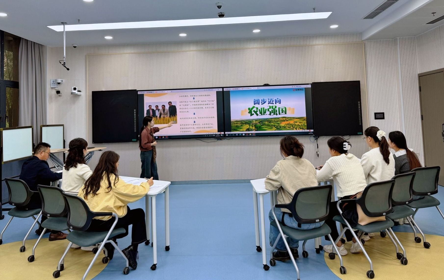9月18日下午,形势与政策教研室开展《阔步迈向农业强国》专题示范课展示活动。会议由教研室主任薛珂主持,全体专兼职教师共同参与。活动旨在发挥党员教师的示范引领作用,加强党建与业务的深度融合,探索高效课堂实践路径,提升备课授课质量。