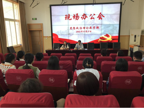 10月31日下午,党委书记李广慧到思想政治理论教学部召开现场办公会,全体专兼职教师参加会议,会议由思想政治理论教学部副主任郝思惠主持。