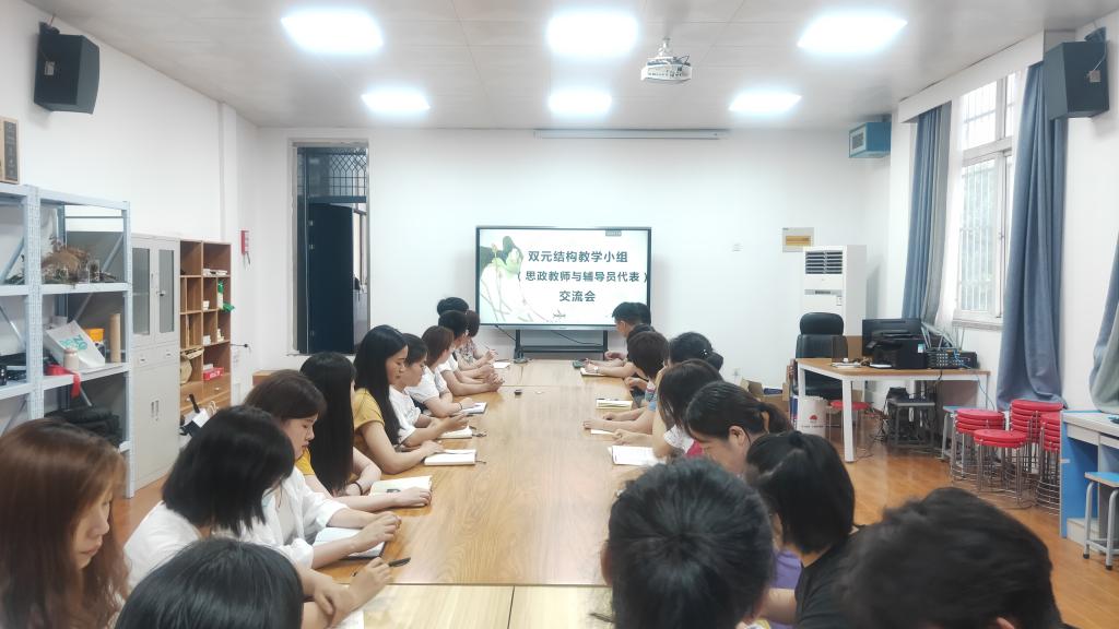 2021年6月14日下午,在思政部的大力支持和配合下,校内重点项目《“三全育人”模式下思政课教学改革中组建“双元结构教学小组”的研究与实践》课题组,在北教510会议室召开了“思政教师与辅导员代表交流会”,共同探讨了“三全育人”模式下思政课教学改革存在的困难和问题,力求通过交流增强双元结构教学小组的凝聚力,合力推进思政育人工作。课题主持人刘晓丽、信息工程系副书记刘彬、思政部办公室主任邵琳、思政部毛中特教研室主任刘君、全体思政课教师及各系辅导员代表参加交流会。