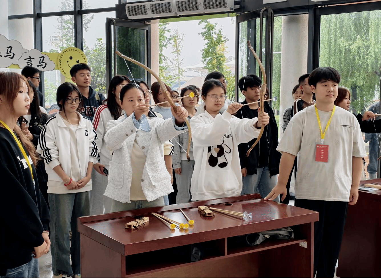 系列活动之二:“礼仪雅集”双节实践活动。“礼射”和“投壶”两项实践活动每队15人、每人5次体验机会,让师生在拉弓、投签的专注中,感受了古人“文武兼修”的魅力。