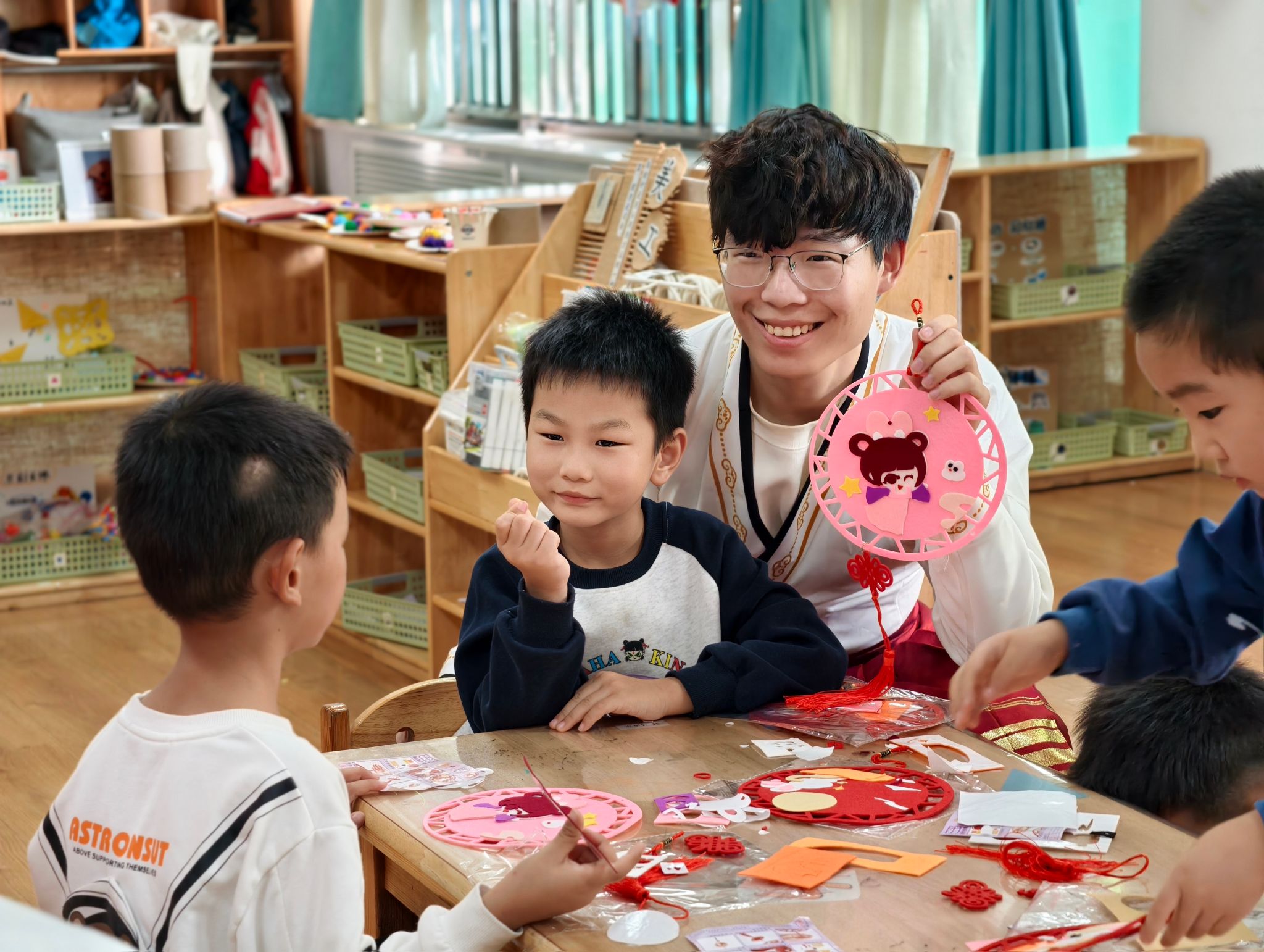 系列活动之三:“月满中华”非遗手工体验营活动。“漆扇”手工制作在港区校区进行:两枚印章集齐的学生便可赴这场“扇上春秋”之约,以漆为墨,绘心中家国愿景。现场师生将“家团圆、国昌盛”的美好期许融入到了指尖匠心,将漆扇之美融于思政育人的氛围。